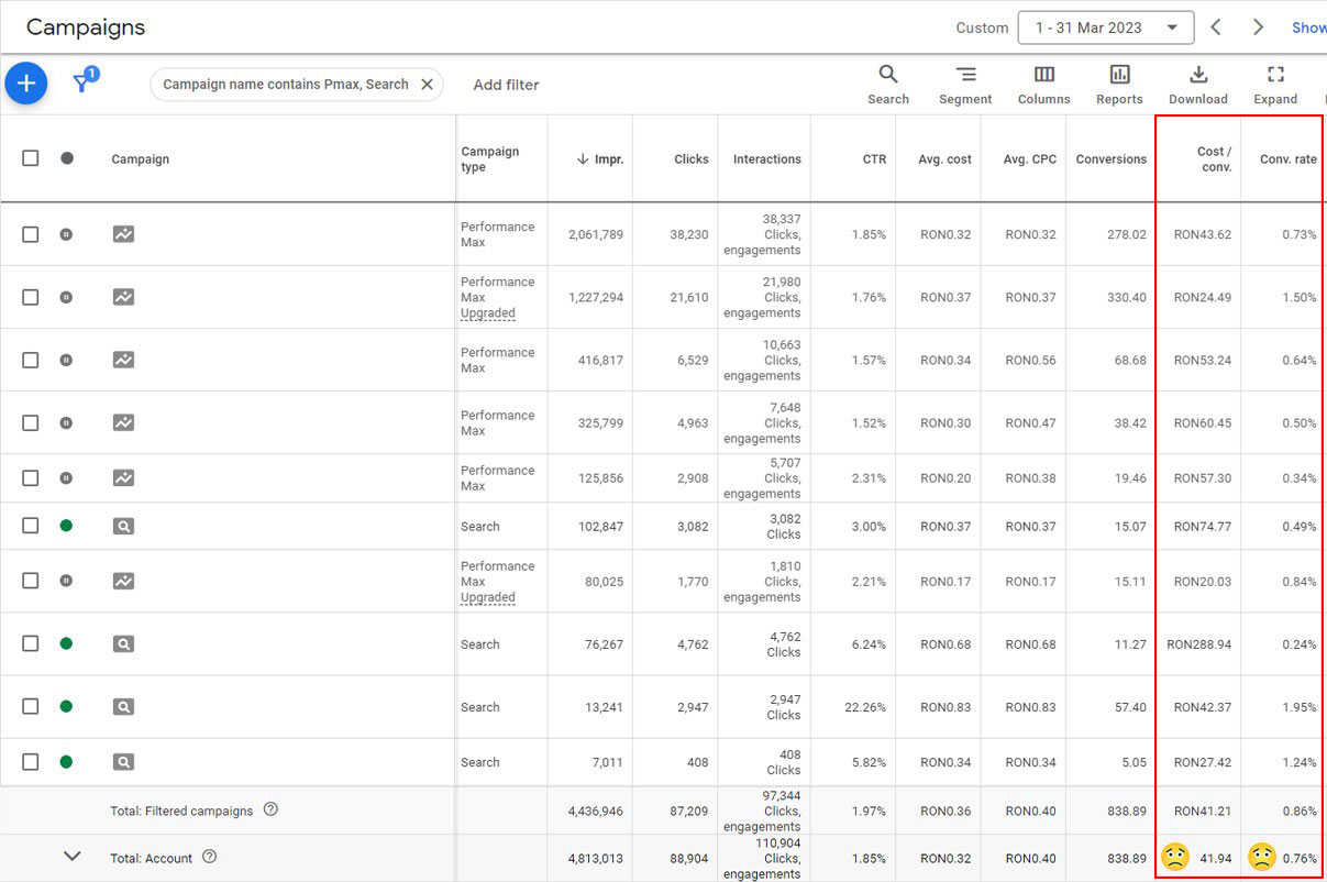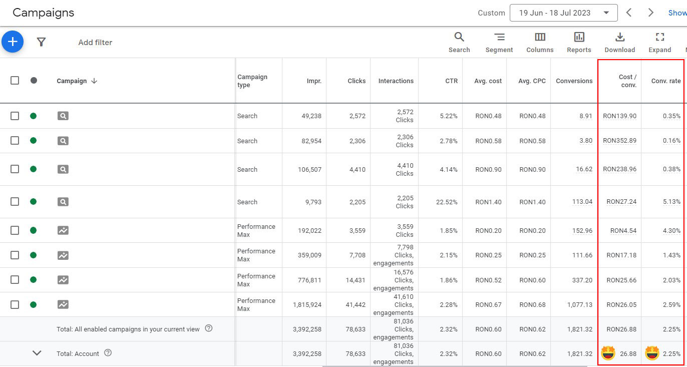 We had a clearly defined goal – to increase sales in the Google channel by 25% and reduce acquisition costs by 20% in Google Ads campaigns. Basically, the client wanted to increase the number of orders from Google Ads using the same daily allocated budget because it was clear to him that there was an opportunity that was not properly exploited on Google Ads and he wanted to make the most of this platform, achieving his goals without increasing the daily allocated budget.
